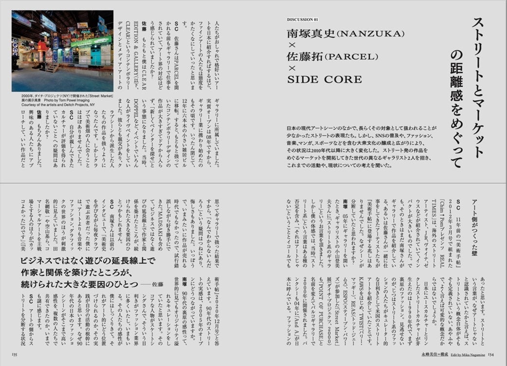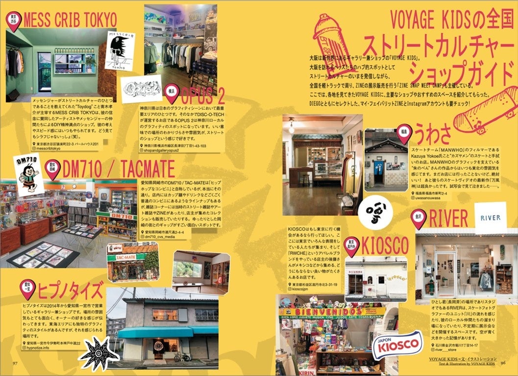 巻頭のインタビューでは、WANTO、森田貴宏、スケシン、グレート・ザ・歌舞伎町、TOKYO ZOMBIEと、熱量の高いコミュニティやシーンを形成している方々に話を聞いています。また、ストリートカルチャーの範囲が拡大していることにあわせ、タトゥーやスケートボード、グラフィティ、メッセンジャー、パルクールなど、様々な領域のキーパーソンに登場してもらいます。また、東京だけではない全国のハブとなるショップも紹介。ストリートのアートを整理するのではなく、複雑に絡み合う路上の文化、その未知なる感性と価値観に迷い込む入り口になる特集となっています。