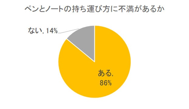 ゼブラの調査では、社会人の55%が日常的にノートを使っていると回答し、そのうちの86%がペンを落としてしまうなどの理由で、ペンとノートの持ち運びに潜在的な不満を抱えていることがわかりました。ペンとノートは密接な関係でありながら、一緒に持ち運ぶことを考えられたペンがあまりありませんでした。