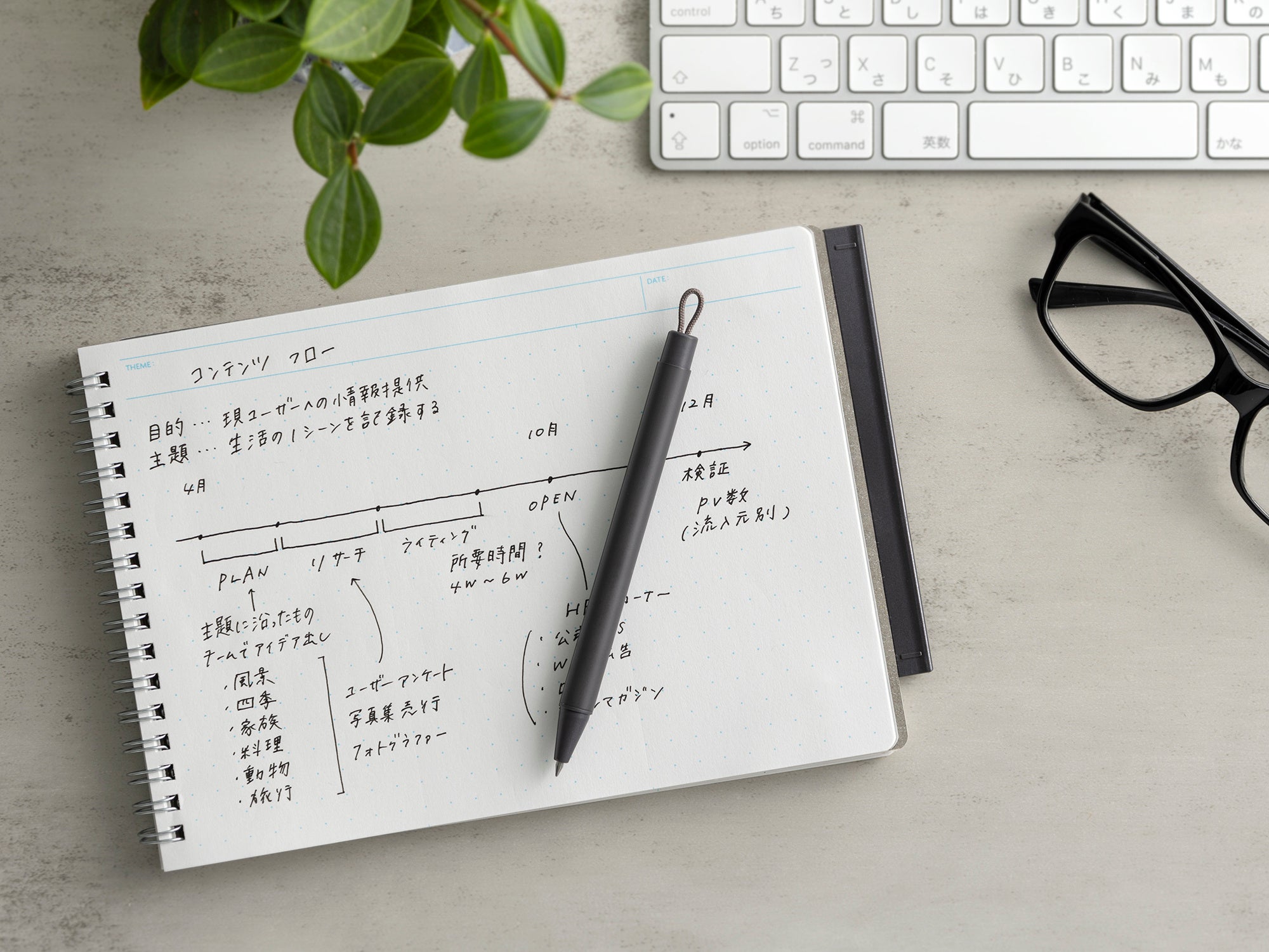 ペンとノートの関係性を見直し、“使う人の思考や記録を支えられたら”と考え、約3年の開発期間を経て「ピタン」は誕生しました。