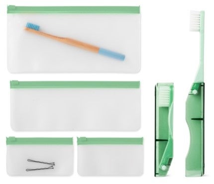 サイズ違いのバッグが4つセットに!歯ブラシもケース入らずでスマートに。