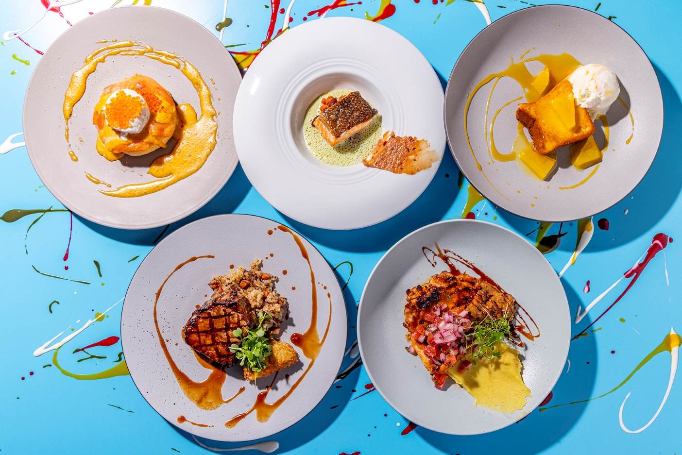 ・ブリオッシュフレンチトースト・パイナップル・杏仁豆腐アイスクリーム・パッションソース