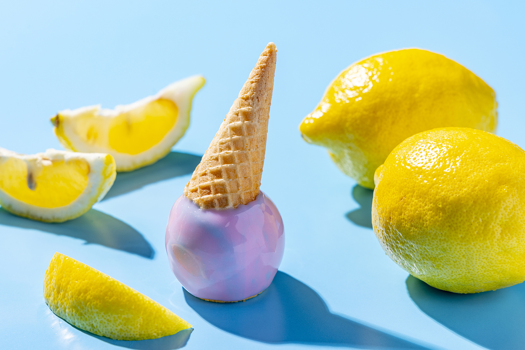 レモン&マスカルポーネティラミスの中心には、ほどよい塩味の西京味噌クリーム。味噌クランチでサクサクの食感も。美しいマーブル模様で夏らしいスイーツに。