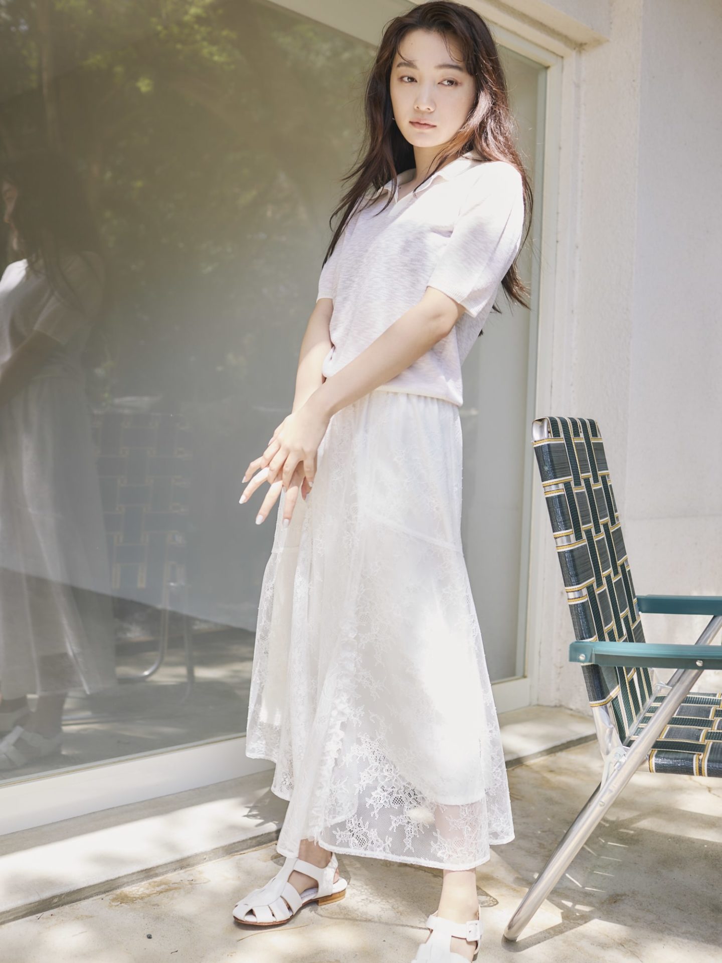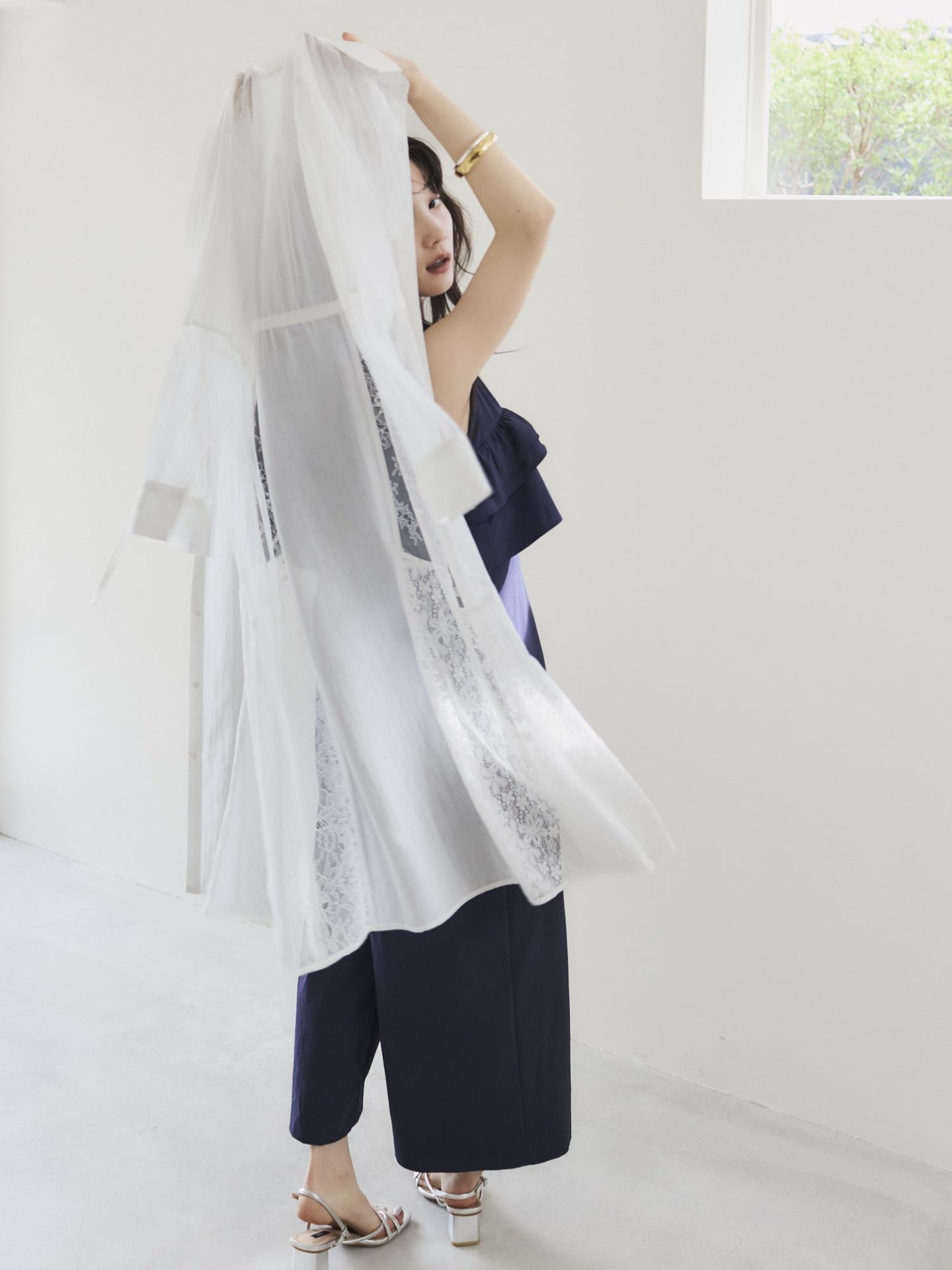 繊細な数種類のレースを自由に切り替え、素材を贅沢につかったワンピースは、やわらかな風をまとう軽やかさ。マニッシュさと女性らしさをあわせもつスリーピースのセットアップは、モダンで都会的な女性像を描きます。