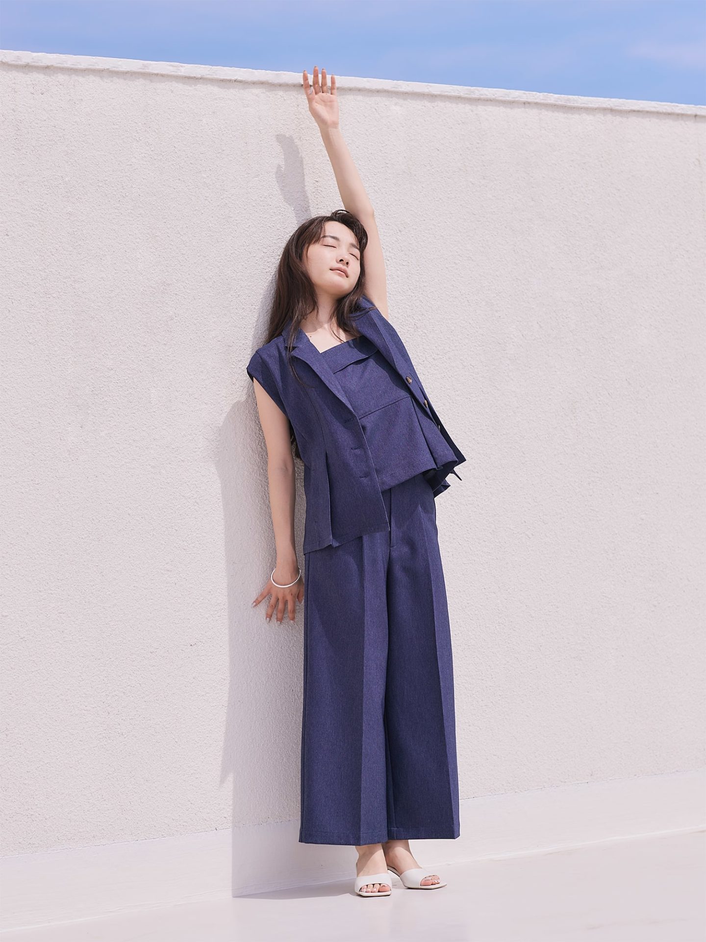 Denim-like Tailored Tucked Gilet : ¥22,000