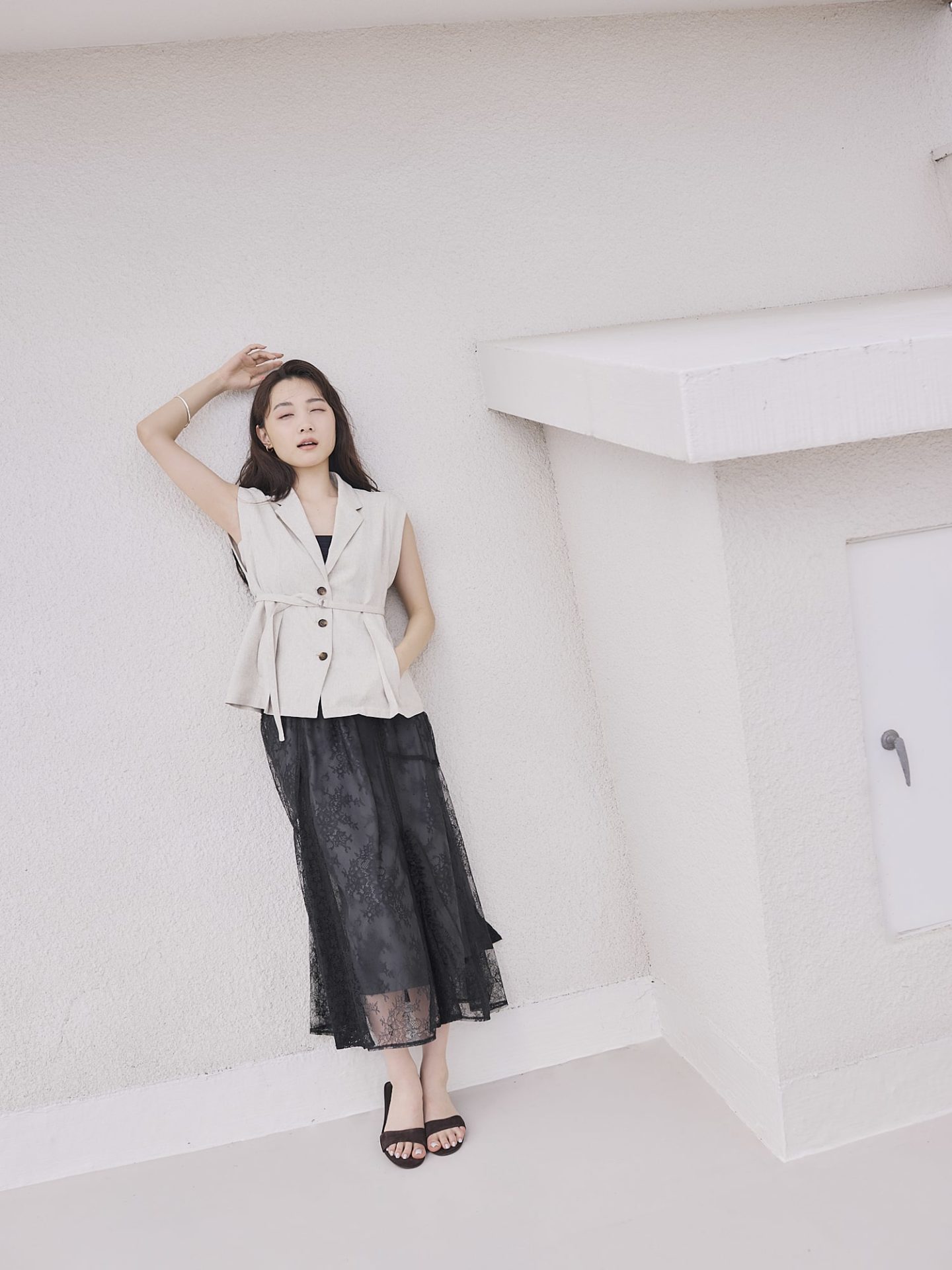 Linen-like Tailored Tucked Gilet : ¥22,000