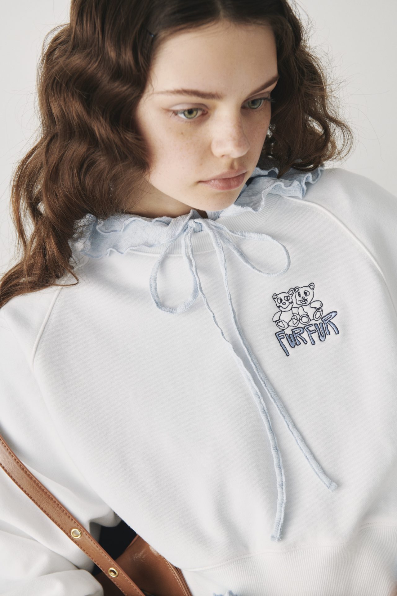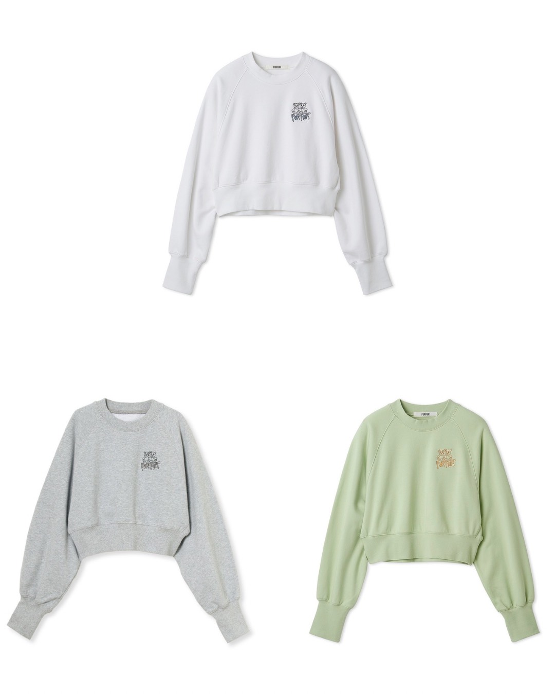 FURFURのオリジナルキャラクターの「スースキスー♡」と「ナイト☆ティア」の仲良しコンビの刺繍をポイントにしたスウェット。