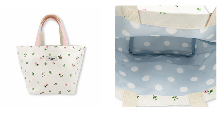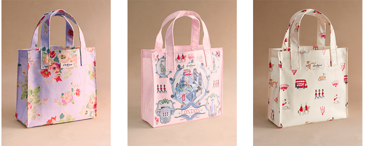 CathKidstonで最も人気の高いアイテムのひとつ、ブックバッグは軽量ながら耐久性のあるPVCコーティングされたコットン素材。汚れなどを拭き取れるのでお手入れも可能で、平らに近い状態に畳めるので旅行時のサブバッグなどとして心強いアイテムです。スタンダードなラージに加え、より小さく便利なスモールサイズが登場しています。